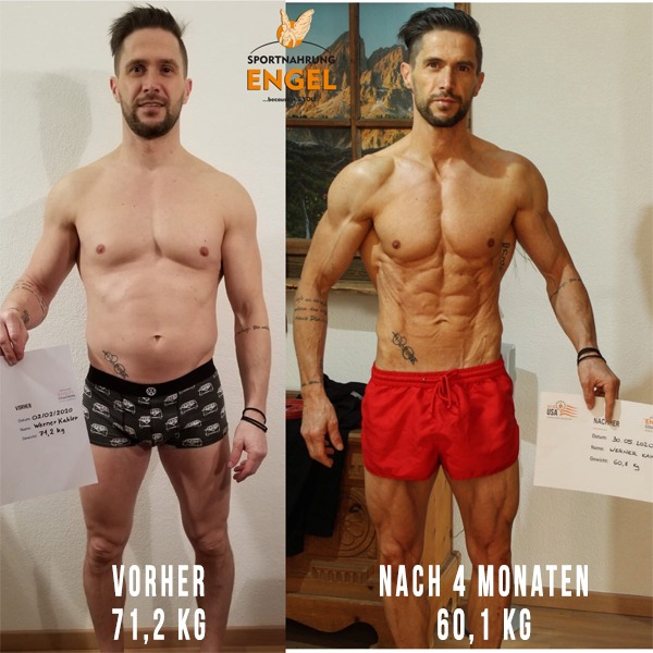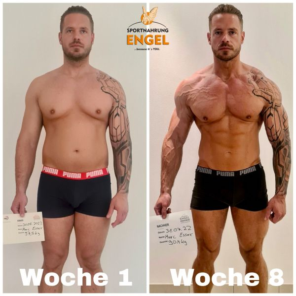 Die Vorher-Nachher-Bilder sind wirklich beeindruckend und ein Beweis dafür, dass das 6 Monate lange Coaching mit Sportnahrung Engel auch wirklich funktioniert.