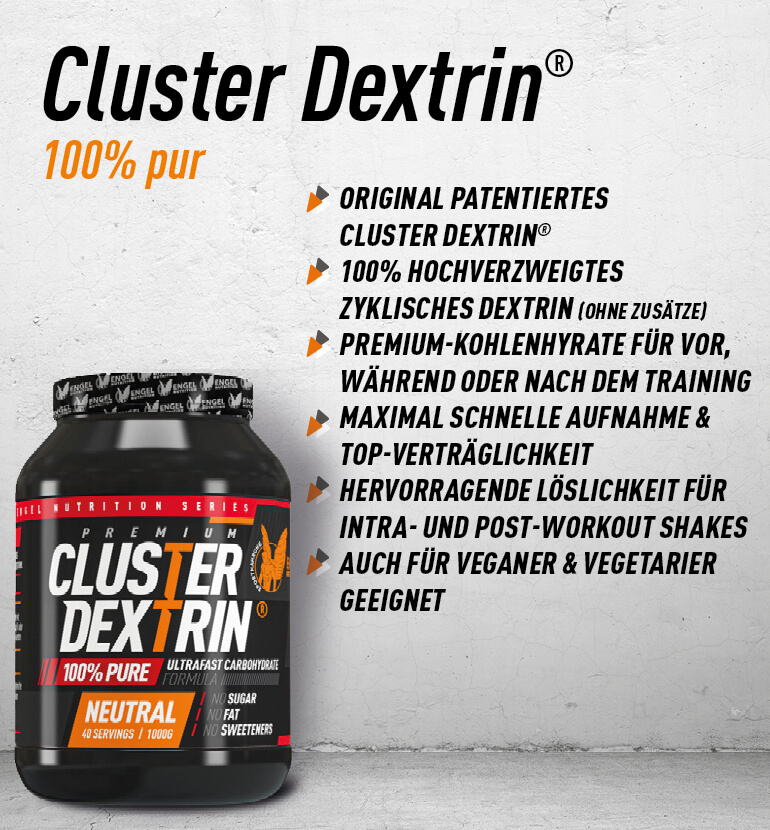 Seit kurzer Zeit ist Cluster Dextrin® in aller Munde und das vollkommen zurecht! Cluster Dextrin® ist zweifellos DIE Kohlenhydratquelle für ambitionierte, zielstrebige Athleten aus den Bereichen Kraftsport & Ausdauer