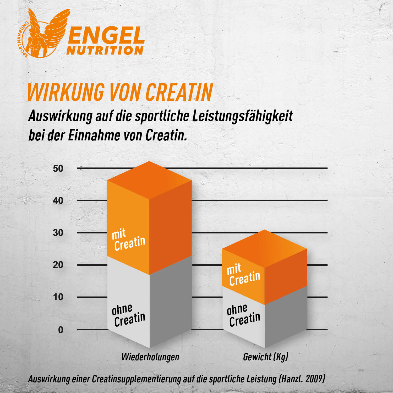 Studien belegen, Creatin erhöht die körperliche Leistungsfähigkeit bei einer täglichen Einnahme von 3g bei Schnellkrafttraining im Rahmen kurzzeitiger intensiver körperlicher Belastung.