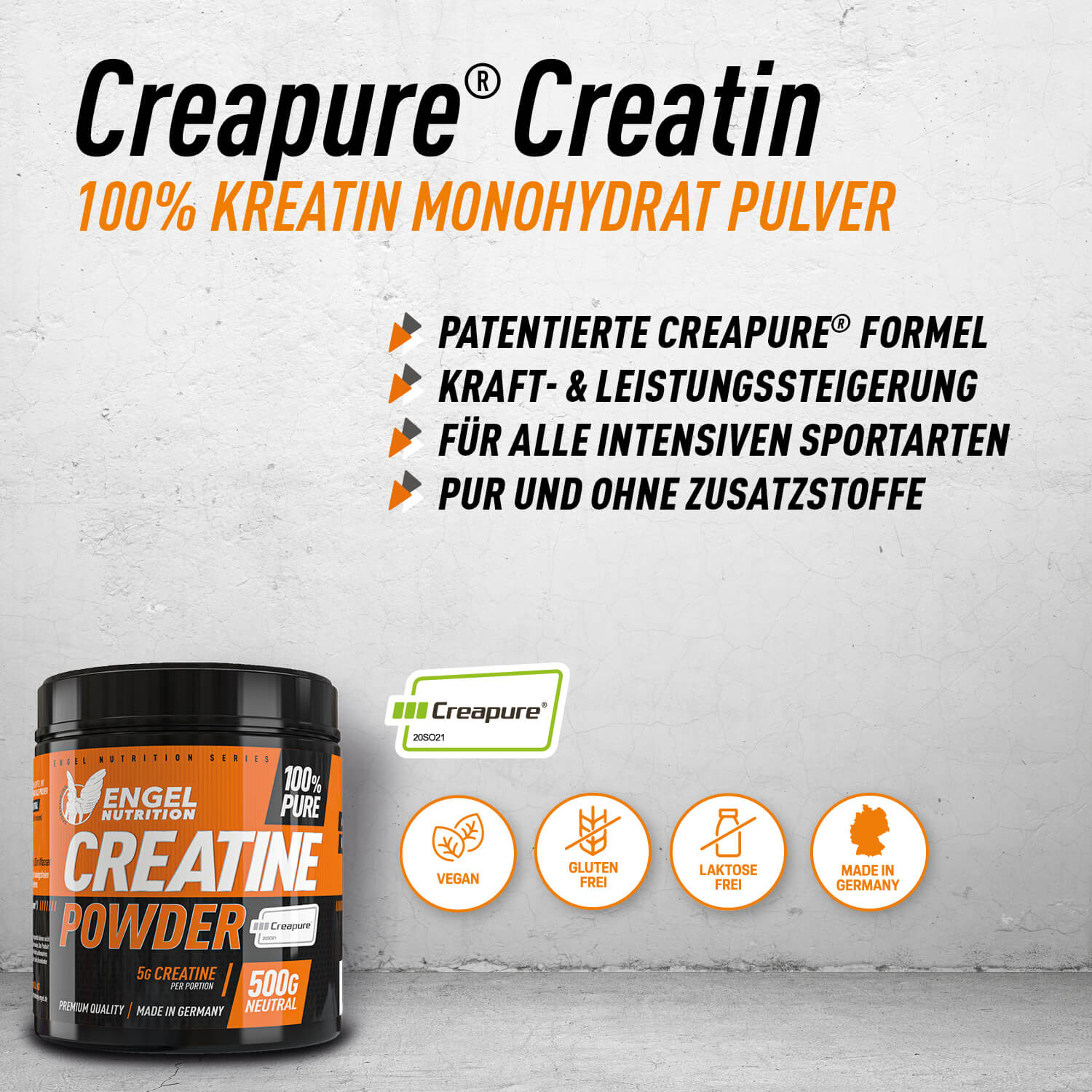 Bei Creapure® handelt es sich um das weltweit reinste und hochwertigste Creatin Produkt - 100% Markenqualität aus Deutschland.