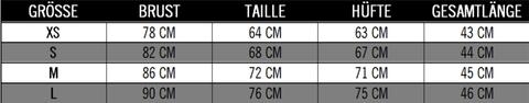 Colour Blocking Leggings Killer Lines von Fitnessvictim Alles andere als langweilig! Durch die harten schwarz-weißen Kontrasten macht dich diese Leggings zum absoluten Blickfang. Die weißen Streifen, die das Knie dieser sonst schwarzen Leggings umspielen, sorgen für einen echten Wow-Effekt, der direkt ins Auge fällt. Ein weiteres Highlight ist der Mesh-Einsatz, der auf Kniehöhe eingesetzt wurde. Somit erhältst du mit dieser Trainingshose einen absolut scharfen Killer-Look. Die staunenden Blicke im Gym sind dir garantiert! Auf der linken Seite befindet sich auf Höhe der Hüfte das einzigartige Logo der Marke in weiß. Auch hier wird der Colour Blockig Effekt aufgegriffen. Die Killer Lines Leggings ist hüfttief geschnitten und formt aufgrund der tiefen Nähte am Gesäß einen tollen runden Po. Doch die Leggings überzeugt nicht nur aufgrund des Aussehens, sondern auch wegen der hochwertigen Verarbeitung und Dry Technologie, die dir im Training ein angenehmes Gefühl verleiht.  Die Marke Fitnessvictim hat sich auf die Fahne geschrieben Designs und Styles zu entwerfen, die alles andere als Mainstream sind. Die Killer Lines Leggings aus der ersten Kollektion erfüllt diesen Anspruch perfekt und fügt sich in eine Reihe einzigartiger Bekleidungsstücke ein. Hier findest du die gesamte Damen- und Herrenkollektion des Labels. Überzeuge dich von den außergewöhnlichen Stücken direkt selbst! Das passt zur Killer Lines Leggings von Fitnessvictim: Ebenfalls kontrastreich ist das Backless Crop Top von Fitness Victim, welches damit sich perfekt in den Style einordnet. Falls du gerne mehr Farbe im Training trägst, kannst du das Better Bodies Printed T-back in pink hierzu kombinieren. Dazu passend haben wir die Trainingsschuhe High Tops von Gorilla Wear in pink in unserem Online Shop. Folgende Größen sind für die Color-Blocking Killer Lines Leggings bei Sportnahrung Engel Online erhältlich: XS, S, M und L. Das Modell trägt die Leggings in Größe S bei einer Körpergröße von 166 cm. Um deine Größe herauszufinden, findest du in der Bildergalerie die Größentabelle.