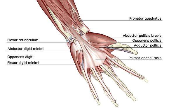 Unterarmmuskeln dienen unserer Griffkraft als Kraftüberträger. Neben diesen befinden sich natürlich an der Hand selbst nochmals ganz spezifische Muskeln wie die Daumenballenmuskulatur (Thenar), die Kleinfingerballenmuskulatur (Hypothenar), die Mittelhandmuskulatur, der Adductor, Zwischenfingermuskeln, kurze Handmuskeln oder lange Handmuskeln die alle samt für die Bewegung der jeweiligen Finger, das eigentliche Greifen aber auch für Präzisionsbewegungen zuständig sind.