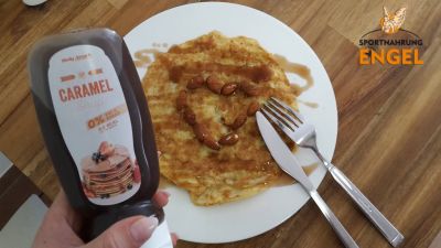 Für ausreichend Protein sorgen Hühnereiweiß (dieses Mal ohne den Dotter aber bitte nicht wegwerfen sondern für eine andere Mahlzeit verwenden!) sowie eine der Portion angemessenen Menge eines Proteinkonzentrats. Kohlenhydrate entstammen hauptsächlich aus Roggenmehl oder (bei bestehender Glutenunverträglichkeit) zarten Haferflocken. Zusammen mit dem Backpulver ergibt alles einen herrlich „fluffigen“ Teig mit ordentlicher Energie für das anstehende Workout.