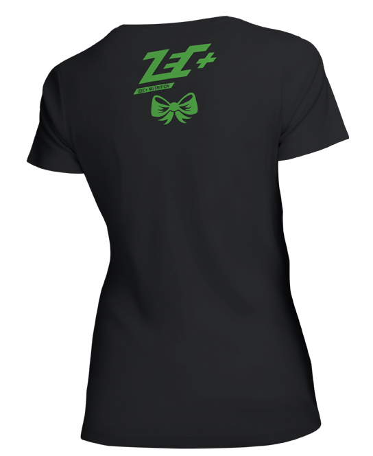 Der coole ZEC+ Aufdruck auf der Vorder- und Rückseite ist wirklich sehr schön designed. Auf der Vorderseite befindet sich das ZEC+ Logo und darunter der Schriftzug Strong and Curves is the new sexy. Auf der Rückseite unterhalb des Nackens wurde ein kleines ZEC+ Logo mit einer süßen Schleife aufgedruckt. Natürlich wurde der Aufdruck im total coolen und knalligen Neon Grün aufgedruckt. Die typischen ZEC+ Farben sind Schwarz, Weiß und Neongrün.